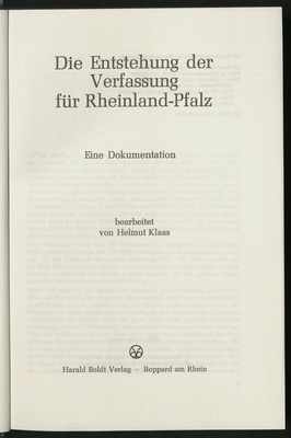Die Entstehung der Verfassung für Rheinland-Pfalz : eine Dokumentation / bearb. von Helmut Klaas