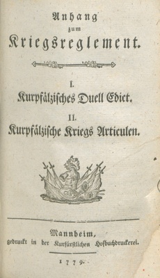 Seiner Kurfürstlichen Durchleucht von der Pfalz Kriegs Reglement vor Dero samtliche Jnfanterie von dem Jahr 1778