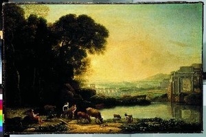 Landschaft mit einer Ruine, Herdenvieh und zwei Hütebuben