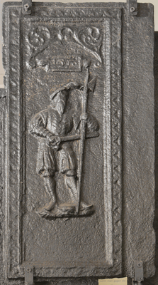 Ofenplatte, Landsknecht über unterworfenem Bauern