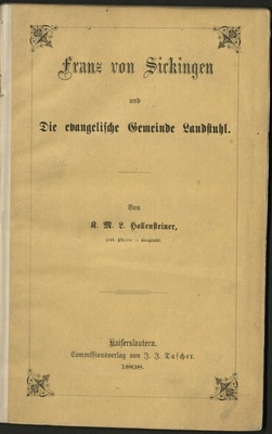 Franz von Sickingen und die evangelische Gemeinde Landstuhl / von K[arl] M[ichael] L[udwig] Hollensteiner