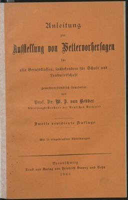 Anleitung zur Aufstellung von Wettervorhersagen für alle Berufsklassen, insbesondere für Schule und Landwirtschaft / gemeinverständl. bearb. von W. J. van Bebber