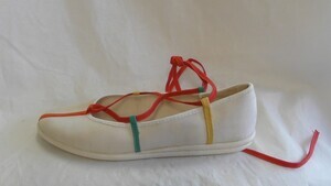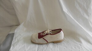 Weiß-rote Kinderhalbschuhe aus Leinen und Leder