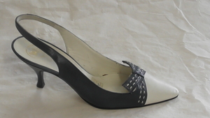 Leinen-Spangenschuh mit Schleife