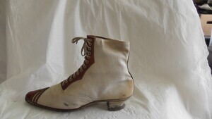 Weiß-brauner Damenstiefel aus Leinen und Leder