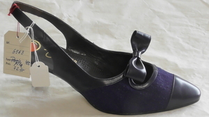 Dunkelblauer Riemenpumps aus Leder und Leinen mit Zierschleife