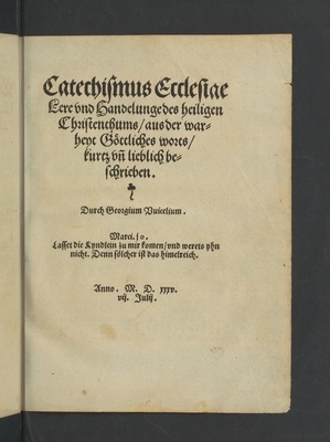 Catechismus Ecclesiae : Lere und Handelung des heiligen Christenthums aus der warheyt göttliches Worts kurtz und lieblich beschrieben / durch Georgium Wicelium
