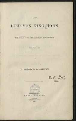 Das Lied von King Horn / mit Einl., Anm. und Glossar hrsg. von Theodor Wissmann