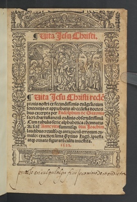 Vita Jesu Christi redemptoris nostri ex fecundissimis evangeliorum sententiis et approbatis ab ecclesia doctoribus excerpta : cum tab. ... ac sancte Anne vita summisque divi Joachim laudibus ... exactiori lima quam prius Lugduni impr. atque ornato figurarum cultu investita / per Ludolphus Cartusiensis
