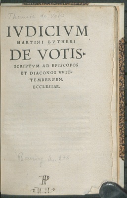 IVDICIVM || MARTINI LVTHERI || DE VOTIS·|| SCRIPTVM AD EPISCOPOS || ET DIACONOS VVIT=||TEMBERGEN.|| ECCLESIAE.||
