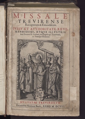 Missale Trevirense : Recognitum & Emendatum / Ivssv Et Avthoritate Reverendissimi, Atqve Illvs Trissimi Domini D. Lotharij Archiepiscopi Treuirensis, ac Principis Electoris