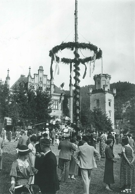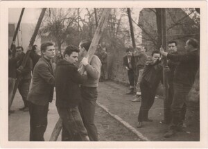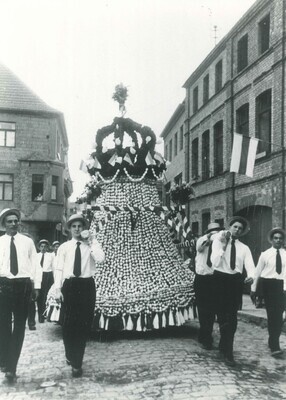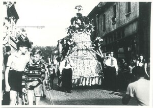 Kirmesbaum und Eierkrone, Kirchplatz Bendorf, 1954