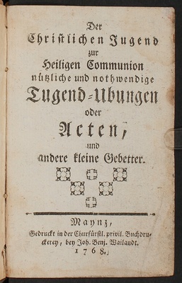 Der Christlichen Jugend zur Heiligen Communion nützliche und nothwendige Tugend-Ubungen oder Acten, und andere kleine Gebetter