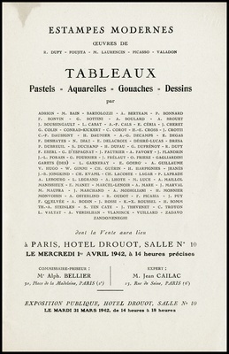 Tableaux, pastels, aquarelles, dessins : gravures (XIXe-XXe siècles) : vente Hôtel Drouot, Salle No 10, le mercredi 1er avril 1942 / Me Alph. Bellier ; Jean Cailac