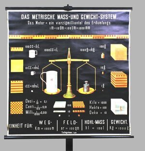 Schulwandbild "Das neue Metrische Mess und Gewichtssystem"