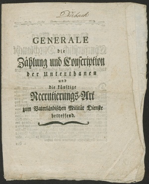 Generale die Zählung und Conscription der Unterthanen und die künftige Recrutierungs-Art zum Vaterländischen Militär Dienste betreffend / [Klemens Wenzeslaus, Kurfürst von Trier. Ex Mandato Serenissimi Elect. Spli. J. L. Schaeffer]