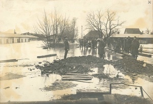 Hochwasser im Rheinhafen Bendorf, amerikanisches Militärdepot 1920