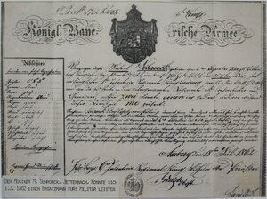 Militärentlassungsurkunde des Musikers M. Schroeck, Jettenbach