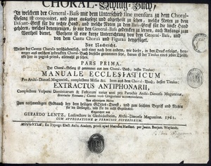 Der Choral-Gesang ist genommen aus dem Choral-Buch, dessen Titulus: Manuale Ecclesiasticum pro archi-diocesi Moguntinâ, complectens missas & c. item aus dem Choral-Buch, dessen Titulus: Extractus Antiphonarii