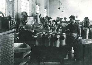 Schwarz-Weiß-Aufnahmen der Schlosserei der Firma Zettelmeyer