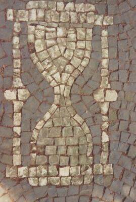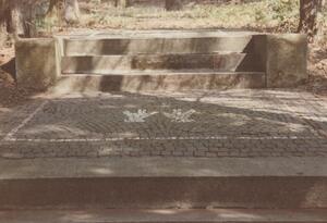 Treppenaufgang jüdischer Friedhof Bendorf, Stufe mit"Sanduhr"-Motiv