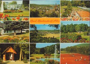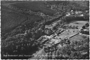 Ansichtskarte mit Motiv "Höhenaufnahme Schwimmbad und Kurgarten"