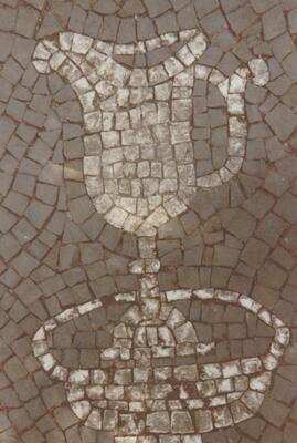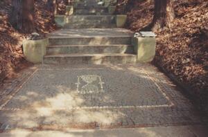 Treppenaufgang mit Motiv der Levitenkanne, jüdischer Friedhof Bendorf