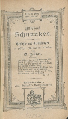 Allerhand Schnookes : Gedichte und Erzählungen in Pfälzer (Westricher) Mundart