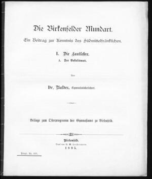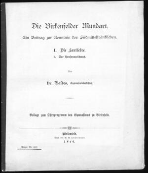 Die Birkenfelder Mundart : ein Beitrag zur Kenntnis des Südmittelfränkischen / [Heinrich] Baldes