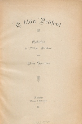 E klän Präsent : Gedichte in Pfälzer Mundart / von Lina Sommer
