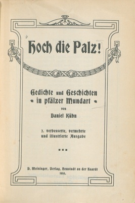 Hoch die Palz! : Gedichte und Geschichten in pfälzer Mundart / von Daniel Kühn