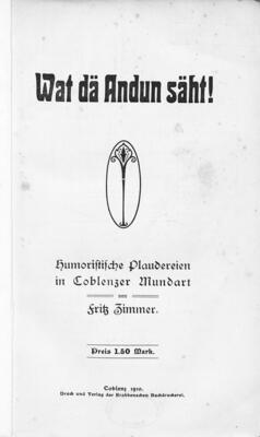 Wat dä Andun säht! : humoristische Plaudereien in Coblenzer Mundart / von Fritz Zimmer
