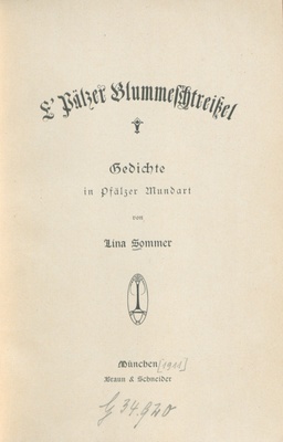 Schtillvergniegt : Gedichte und Erzählungen in Pfälzer Mundart / von Lina Sommer