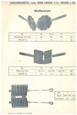Katalogseiten Concordiahütte, Waffeleisen und Bundformen
