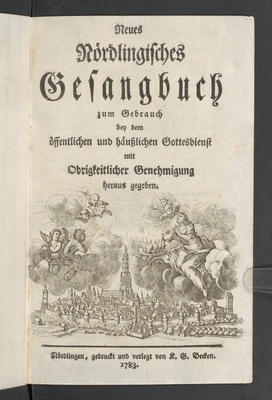 Neues Nördlingisches Gesangbuch : zum Gebrauch bey dem öffentlichen und häußlichen Gottesdienst ; mit Obrigkeitlicher Genehmigung heraus gegeben