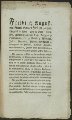 Filter löschen Filtern nach: Nassau-Usingen, Friedrich August von Filter Nassau-Usingen, Friedrich August von entfernenFiltern nach Kategorie