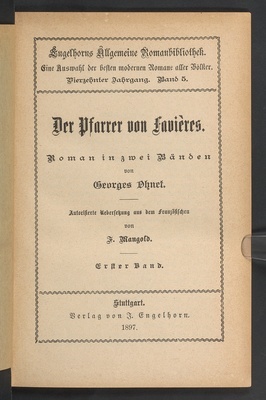 Der Pfarrer von Favières : Roman / von Georges Ohnet. Autoris. Übers. aus dem Franz von F. Mangold