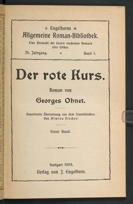 Der rote Kurs : Roman / von Georges Ohnet. Autoris. Übers. aus dem Franz. von Alwina Vischer