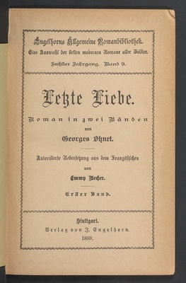Letzte Liebe : Roman / von Georges Ohnet. Autoris. Übers aus dem Franz. von Emmy Becher