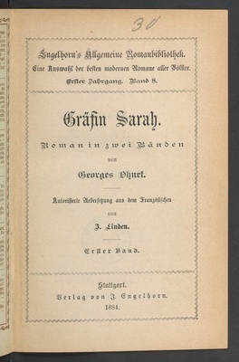 Gräfin Sarah : Roman / von Georges Ohnet. Autoris. Übers. aus dem Franz. von J. Linden