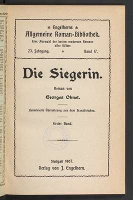 Die Siegerin : Roman / von Georges Ohnet. Autoris. Übers. aus dem Franz