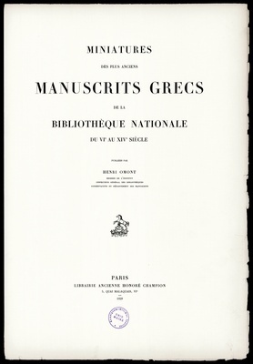 Miniatures des plus anciens manuscrits grecs de la Bibliothèque National : du 6. au 14. siècle / publ. par Henri Omont
