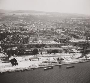 Luftaufnahme Rheinhafen und Ort Bendorf 1961