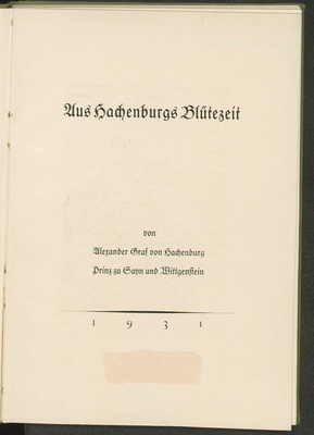 Aus Hachenburgs Blütezeit / Alexander von Hachenburg