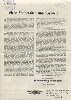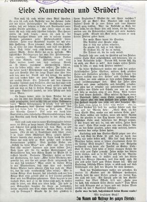 Kriegspredigt und Ansprache von Pfarrer Cantzler, Speyer