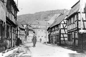 Amerikanischer Besatzungssoldat spaziert 1918 durch Bodendorf