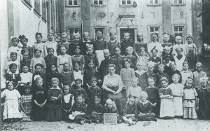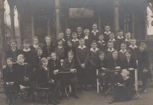 Klassenfoto, ehemalige katholische Schule im Abteigebäude, Sayn, 1921