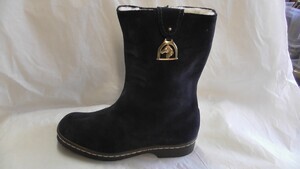Dunkelblauer Kinderstiefel aus Veloursleder mit Pferdekopf