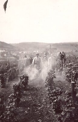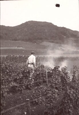 Foto Arbeiter im Weinberg beim Spritzen