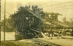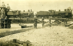 Pionierbrücke über die Isar mit Dampflokomotiven